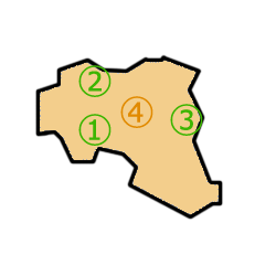 | 西 | 石ころ 鉄鉱石 大地の結晶 水光源珠 | ランダム | ||